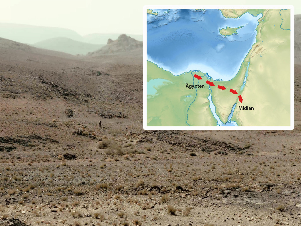 Als der Pharao davon hörte, versuchte er, Mose zu töten. – Folie 8
