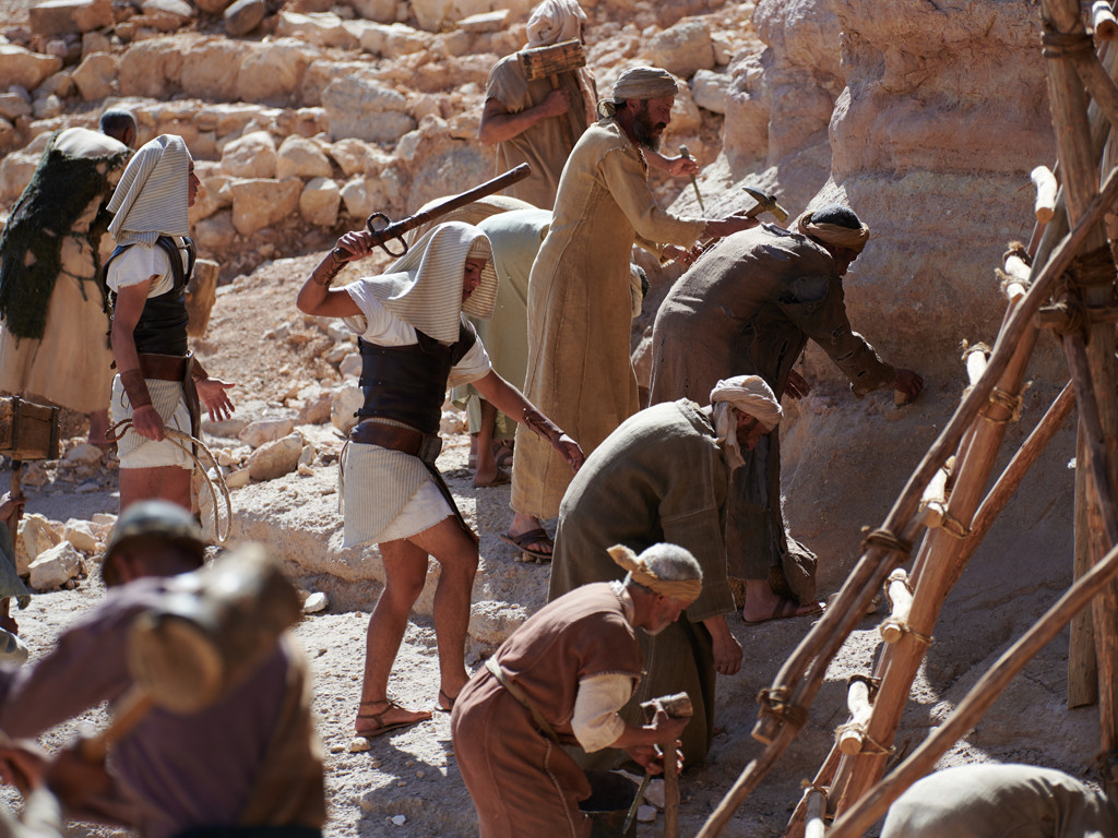 … ging er zu seinem Volk und beobachtete es bei seiner harten Arbeit. – Folie 2