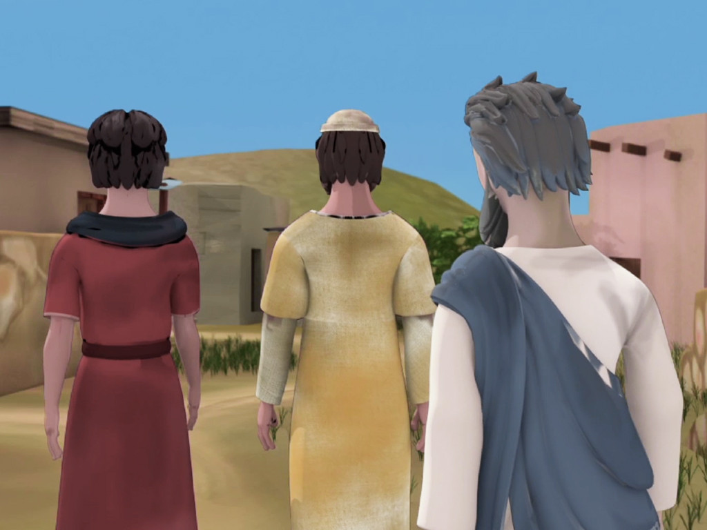 Lydda lag in der Nähe von Joppe. Als die Jünger Jesu erfuhren, dass Petrus in Lydda war, schickten sie zwei Männer zu ihm. – Folie 5