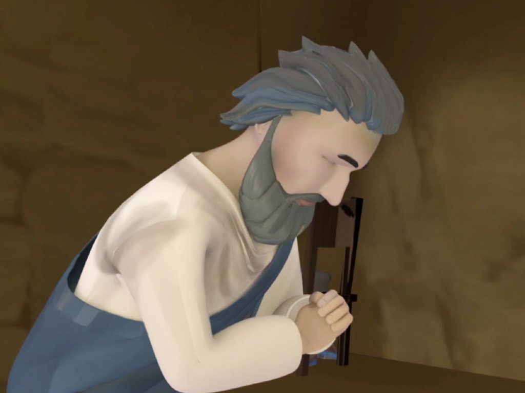 Als er ankam, wurde er nach oben in das Zimmer geführt. – Folie 8