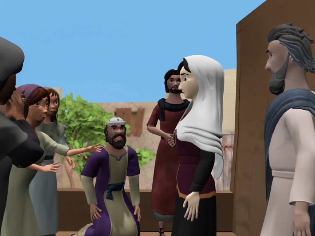 Dann rief er die Gläubigen und Witwen, die er aus dem Zimmer geschickt hatte, und zeigte ihnen Tabita lebend. – Folie 16