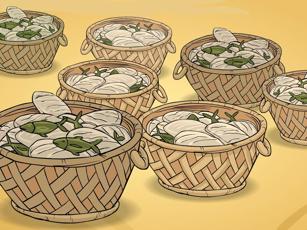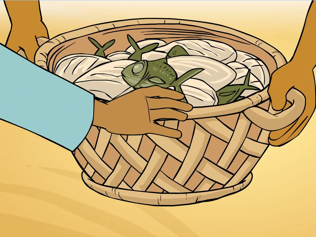 Die Jünger sagten: „Dieser Ort ist wie eine Wüste. Wo sollen wir genug Essen herbekommen, um so vielen zu essen zu geben?“ – Folie 7