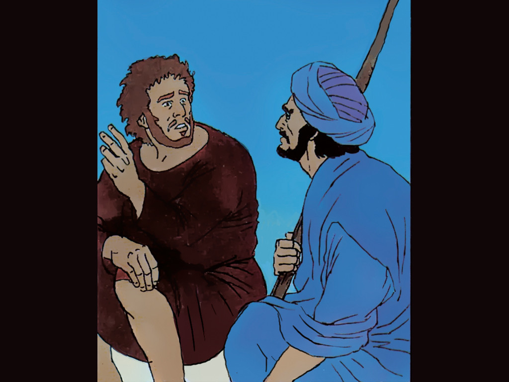 Jesus sieht Petrus an und schaut ihn in die Augen. – Folie 7